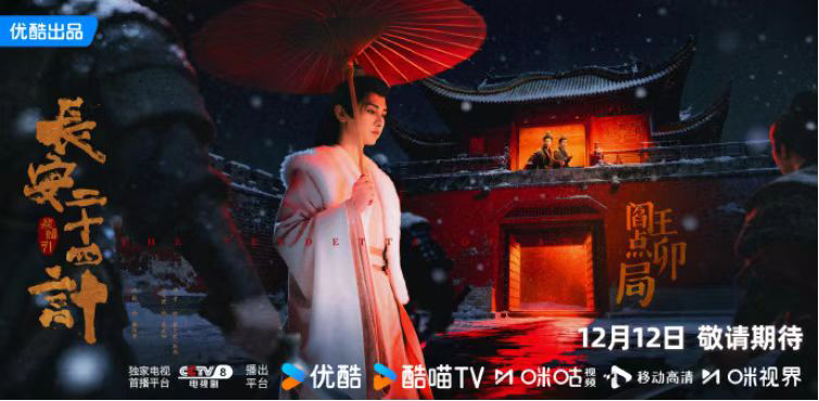 由成毅领衔主演,刘奕君、王劲松、周奇、佟梦实领衔主演,徐璐特邀领衔主演,倪大红特邀主演,张涵予、叶祖新特邀出演,优酷、西安七曜一九一制作,周静、梁超担任总制片人的古装复仇剧集《长安二十四计》12月12日起登陆CCTV-8,优酷、咪咕同步全网播出。